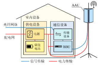 第5代移动通信技术(5th generation mobile networks,5G通信)相比于前代技术,具有“高带宽、高容量、高可靠性、低延时、低功耗”的特点,将提供更优秀的通信质量和更丰富的应用场景,推动经济和社会的快速发展。近年来5G技术的研发和推广方兴未艾,我国在5G技术积累、商用推广和设施建设方面位于世界前列。建设海量的5G基站保障了5G网络覆盖,但同时也会导致通信运营商的用电成本成倍上升。一方面,当前单个5G基站的满载功耗约为4kW,相当于4G基站的3倍;另一方面,5G基站的建设数量也将大大超过4G基站。高昂的用电成本或将成为制约5G通信进一步发展的瓶颈之一。因此,通信运营商需要寻找有效降低用电成本的办法。 5G基站参与需求响应是降低用电成本的潜在途径。5G基站建设时均装设了储能电池作为不间断电源(Uninterruptible power supply,UPS),同时基站设备功耗本身可调节,因此在保证供电可靠性和通信服务质量的同时具有一定的用电灵活性。通过充分发掘5G基站的用电灵活性,通信运营商可以参与到电网需求响应中,降低基站的用电价格或获取相应的需求响应补贴,从而有效缓解5G基站用电成本过高的问题。 对于电力系统而言,利用5G基站提供的灵活性资源,能够促进可再生能源消纳。为应对大量可再生能源并网带来的强不确定性,电力系统需要更多的灵活调节资源来实现发电和负荷的实时平衡。虽然单个5G通信基站的功率较小,但是5G基站的总数量庞大,属于典型的分布式资源。如果能够有效对海量5G基站进行协调调度,充分发挥其用电灵活性,则可以形成可观的聚合效应,为消纳可再生能源提供支撑。 5G基站参与需求响应,可实现电力系统与通信系统的有效互动,促成双方的合作共赢。当前仍鲜有文献对于5G基站参与需求响应进行探究,因此有必要梳理其关键性技术,分析其发展前景。本文的主要工作如下: 1)基于5G基站的用电特点,对于其参与需求响应的潜力进行分析; 2)对于实现5G基站参与需求响应的关键技术进行梳理; 3)对于5G基站作为需求侧资源参与电力系统互动的应用场景进行展望; 4)对于5G基站参与需求响应潜在的商业模式进行探讨。 研究内容一:5G基站需求响应潜力分析 本文首先对于5G基站的基本构成和5G基站负荷需求进行了分析。5G基站设备主要包括供电设备和通信设备两类,此外还需安装照明、空调设备等。其中,供电设备包含电源和储能电池;通信设备主要包括有源天线单元(Active antenna unit,AAU)、基带单元(Base band unit,BBU)和网络传输设备。5G基站的典型组成如下图所示。 5G基站用电设备中,耗电量最大的为AAU。AAU的功耗随基站的通信负载变化而变化。相比之下,其他用电设备(包括直流设备如BBU、传输设备等和交流设备如照明、空调等)的负荷随通信负载率的变化则较小。作为5G基站功耗的主要组成部分,AAU功耗随基站的通信负载变化的特点使得5G基站的用电特性显著受到通信负载的影响。 5G基站负荷受通信负载影响的特性使得其存在参与需求响应的潜力。一方面,基站设备的功耗具有一定的调节灵活性;另一方面,通信负载在一天中变化导致基站设备功耗在各个时段不同,相应地保障基站供电可靠性所需的储能电池最小备用容量在各个时段也不相同。可以根据基站的通信负载大小,动态地将储能电池的容量分为两部分:一部分作为供电后备;另一部分作为灵活调度资源。因此,可以将5G基站的储能电池当作一种容量时变的储能,参与到需求响应中。 研究内容二:5G基站参与需求响应关键技术 5G基站参与需求响应需要有一系列关键技术作为前提。本文的第二个主要研究内容是讨论需要开展的相关研究和技术实现,包括基站设备功耗管理、储能电池能量管理、储能电池可调度容量评估、通信负载预测和基站聚合与协同调度。 其中,基站设备功耗管理和储能电池能量管理是5G基站用电调控的直接技术;储能电池可调度容量评估用于评价在保障基站供电可靠性前提下,储能电池的调度可行域;通信负载预测用于估计5G基站用电负荷,服务于储能电池的可调度容量分析;基站聚合与协同调度用于实现海量5G基站的协同。 研究内容三:5G基站参与需求响应应用前景 本文的第三个主要研究内容是5G基站在需求响应中的应用前景。研究主要聚焦于分析在不同需求响应应用场景下,5G基站的响应潜力,能否参与响应,如何参与响应,以及参与响应收益的问题。 本文主要针对电力调峰、阻塞管理、调频辅助服务等典型的电力需求响应场景开展了分析。当然,5G基站也可以同时参与多种需求响应应用,在电网负荷侧扮演多种角色。 研究内容四:5G基站参与需求响应商业模式 本文的第四个主要研究内容是5G基站参与需求响应商业模式。其中的核心问题包括,参与需求响应如何产生收益,产生的收益如何归属和分配,所需付出的成本如何测算,以及参与各方能否获得足够回报。 本文从不同运维主体的视角,即以基站运营商为运维主体、以电网公司为运维主体、以第三方为运维主体,分别对上述问题进行了回答,展望了未来5G基站参与需求响应的商业模式。 5G通信网络的快速发展将会带来5G基站的大量建设。对于电力系统而言,数量庞大的5G基站是潜在的灵活性资源。促进5G基站参与需求响应,能够降低基站的用电成本,增加电力系统灵活性,从而实现通信系统和电力系统的互利共赢。
