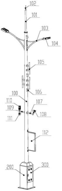 [0048] 可以理解的是,杆体100上安装设备和标志物包括但不限于以上所列部分,可根据需要扩展安装其它智能设备和标志物。