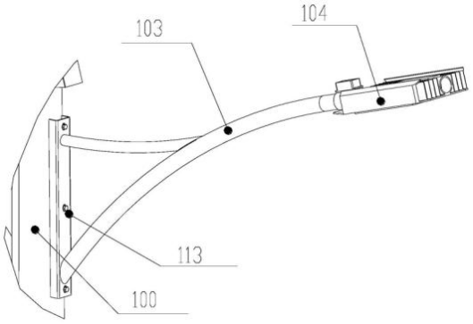 [0035] 优选地,照明灯具104通过灯臂103固定在杆体100上,灯臂103通过连接螺栓113固 定于杆体100上。