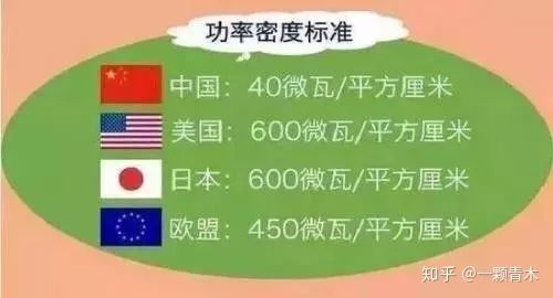 我们国家对通讯基站的功率设定的标准非常严格,远远高于美国和欧盟标准,仅40微瓦/平方厘米,而美国的标准,则是600微瓦,足足高出了15倍。